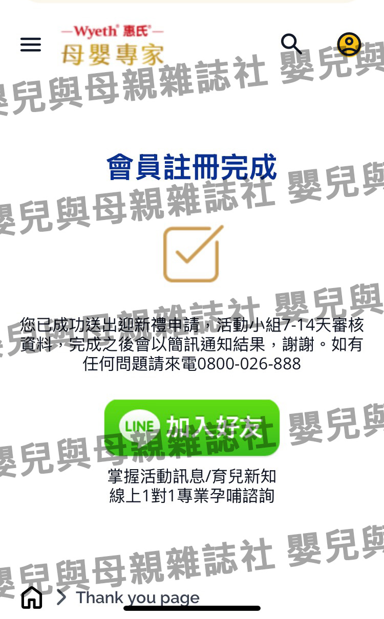 *送出會員註冊資料後請截圖【送出惠氏媽媽會員註冊截圖畫面】,並完成第2步驟(可參考此活動頁最下方範例圖)